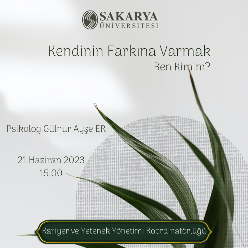 Final stresiniz bittiğine göre kendinize dönmenin zamanı geldi. Kariyer ve Yetenek Yönetimi Koordinatörlüğü tarafından düzenlenen "Kendinin Farkına Varmak-Ben Kimim?" adlı etkinlik 21 Haziran 2023 Çarşamba günü saat 15.00'te online olarak gerçekleşecektir. Kendinizi keşfetmenize yardımcı olacak uygulamalar ile Psikolog Gülnur Ayşe ER'in konuk olacağı etkinliği sakın kaçırmayın.