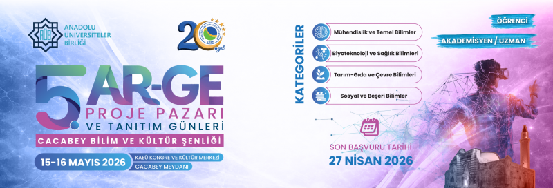 Anadolu Üniversiteler Birliği üyesi üniversiteler tarafından düzenlenen ve Kırşehir Ahi Evran Üniversitesi ev sahipliğinde gerçekleştirilecek olan 5. Ar-Ge Proje Pazarı ve Tanıtım Günleri, 15 Mayıs 2026 tarihinde akademi, öğrenci, sanayi ve kamu paydaşlarını bir araya getirecektir.